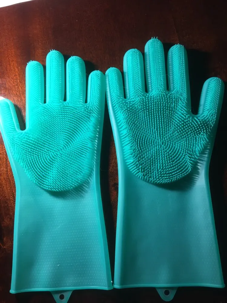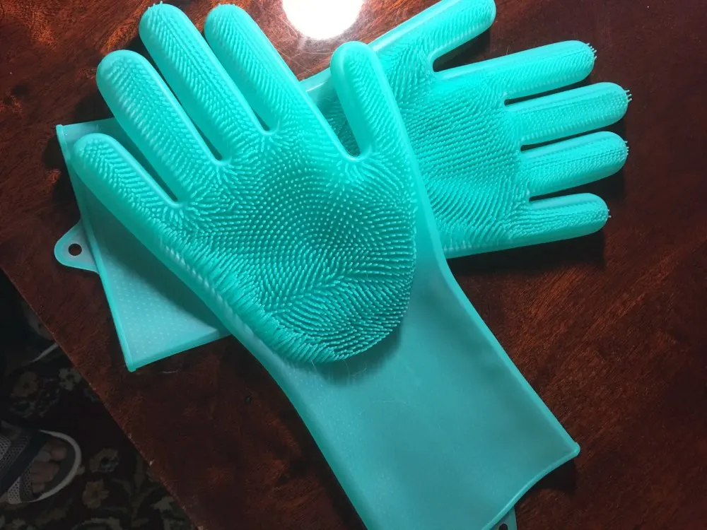 The silicone scrubber cleaning gloves are the perfect addition to your kitchen. The combined glove and scrubber design is a more efficient and sanitary alternative to a regular old kitchen sponge. These gloves will bring convenience, cleanliness, and organization to your home.